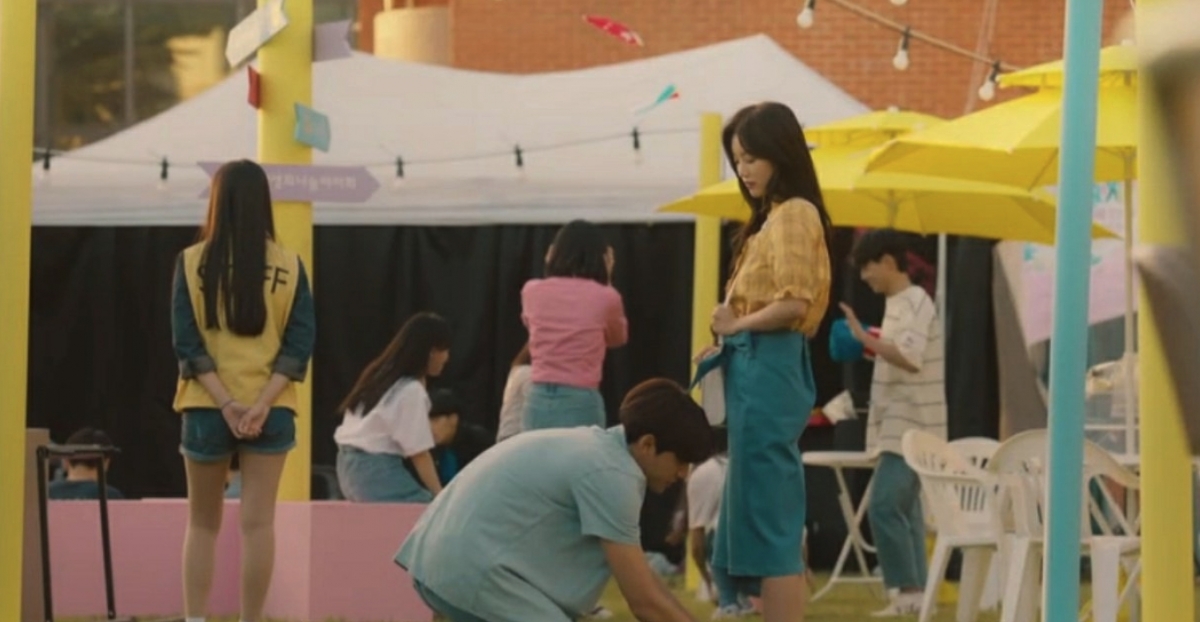 男生聽到行人的提醒,又看到事主的鞋帶真的鬆了,突然蹲下為女事主綁鞋帶。男生忽然的動作,令身邊的行人都望向兩人。