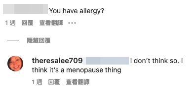 近日她在網上Po出自己的近照,全素顏的她臉上滿布雀斑和細紋,令不少網友都感到驚訝,直言完全認不出是李綺虹:「最美郭襄也老了」不過李綺虹並沒有介意,反而有人留言問她是否過敏才皮膚變差的時候,大方地回答應該是因為在更年期中。