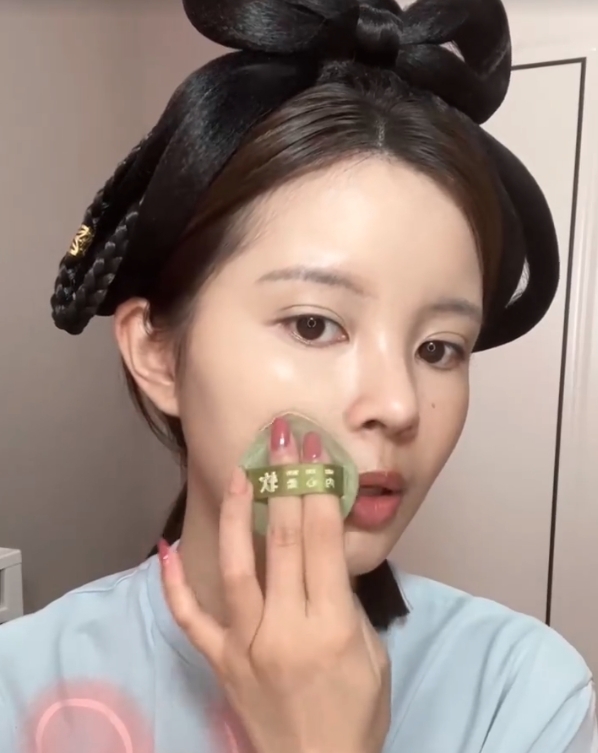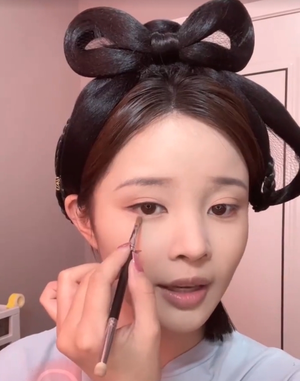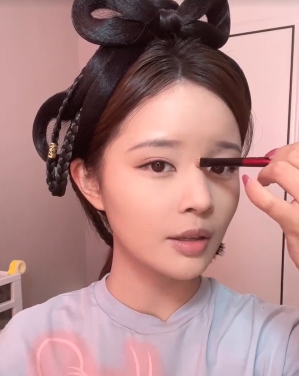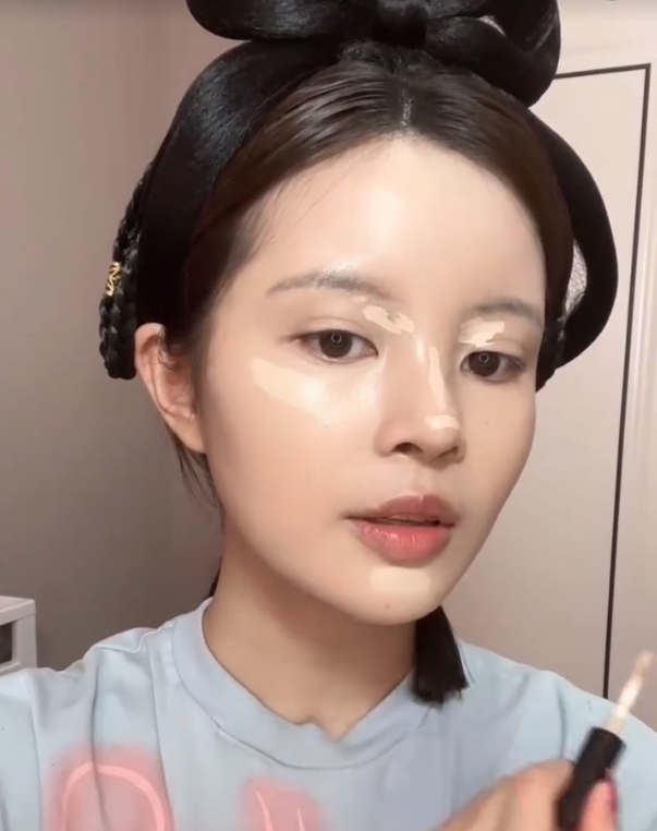 由於趙露思的皮膚又白又嫩,所以如果皮膚不夠白,底妝產品可以選比原本膚色白一度的色號。然後在眉骨、鼻樑、下巴等位置進行提亮,讓臉部看起來更顯瘦。