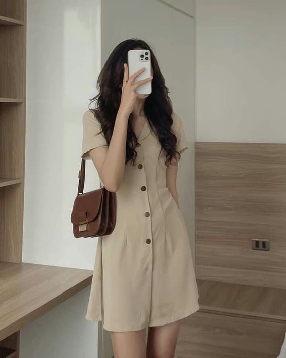 揀選奶茶色的連身裙,不用煩惱之餘,裙擺會有種飄逸感,充滿氣質、斯文的感覺~