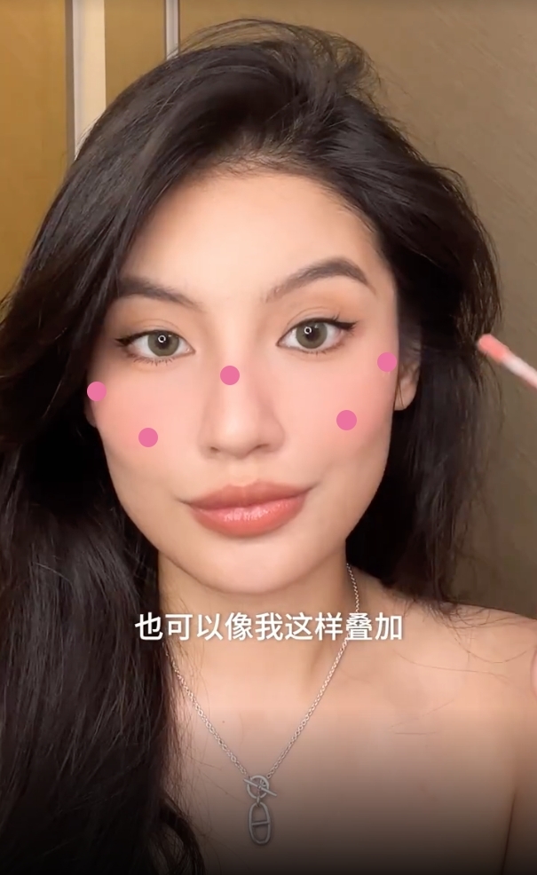 另外「五點法」同樣能簡單地打造出「W字腮紅」,就算是用作疊加胭脂使用都可以~先找出「W」的五個定點,再用胭脂掃或粉撲拍開。