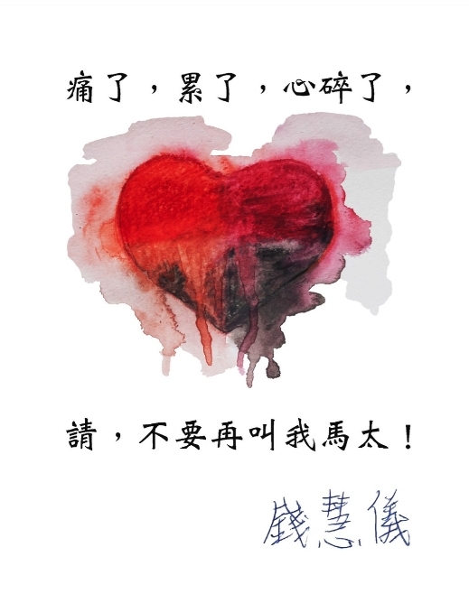 不過,近日,錢慧儀發聲明指已與馬清揚離婚:「《痛了,累了,心碎了》這首歌正好代表我過去四年來的心情。今天,我決定重新出發,向一段逝去的愛情及 27年的婚姻正式告別。請,以後不要再叫我馬太。謝謝!」