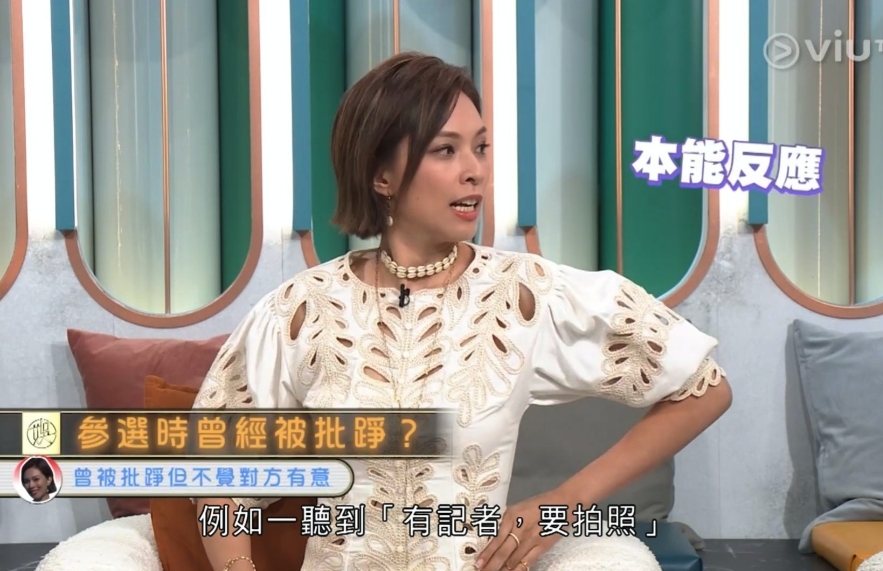 她解釋當時一班候選佳麗對娛樂圈不熟悉,所以當聽到保姆說:「有記者,要影相」時,外加要面對50個記者,便會慌張、急忙地擺姿勢,於是有佳麗的手肘會不小心撞到其他佳麗。