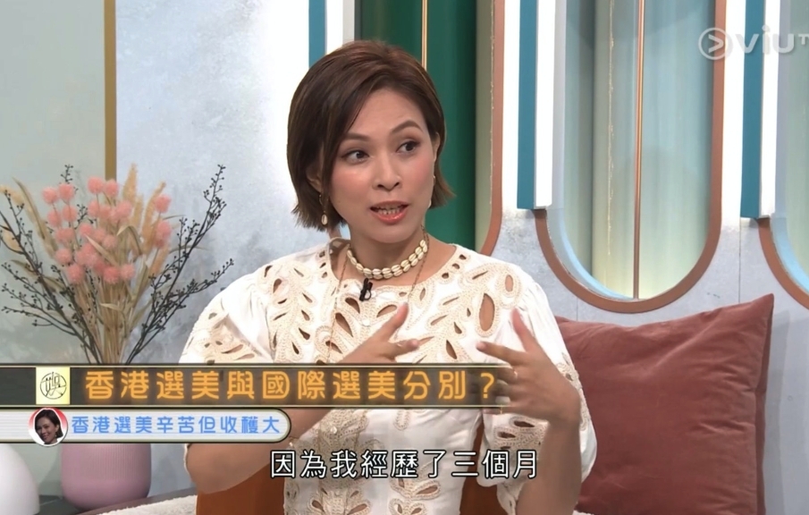 朱慧敏更分享外國候選佳麗,性格很開放,所以訓練時也會做自己,例如訓練站立時,會因為感到累而選擇坐下。朱慧敏形容當時有60人參加,至少有40位坐在地上休息,直言場面只會在外國發生。