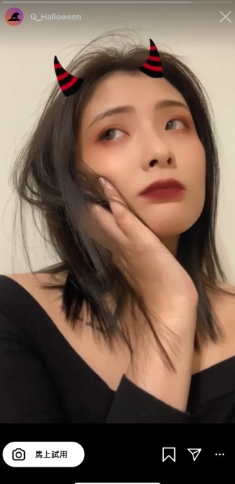 萬聖節也少不了惡魔的裝扮吧!不少人想不到裝扮成甚麼,也會買個惡魔頭角頭飾,投入萬聖節的氛圍。IG filter也有惡魔頭角的選擇,風格也多樣~