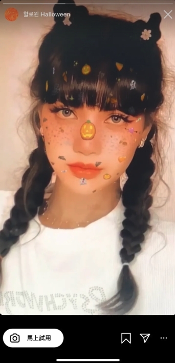 萬聖節的重要元素,當然少不了南瓜啦~不想找南瓜頭飾的你,可以試試以下的南瓜濾鏡,既有美顏效果,也很型格呢~