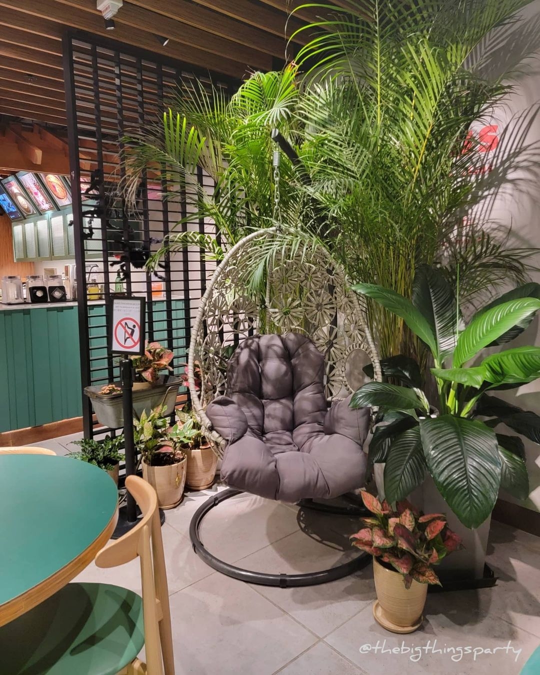 位於南豐紗廠的The Big Things Party以園林風為裝潢主題,餐桌和椅子都是藍綠色的,而且店內也擺有不少植物物。食物主打日式西餐,它的吉列玉子三文治、明太子忌廉烏冬、日式便當都挺出名。