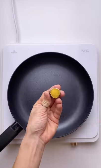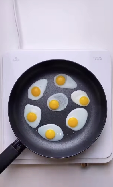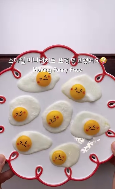 2.把鵪鶉蛋小心翼翼打在煎鍋裏,得到想要的熟成度後,放上用印花模具壓出的紫菜,把煎蛋變成可愛表情符號。