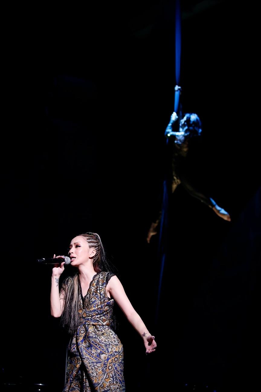 中島美嘉一邊唱一邊用穿著高跟鞋的腳大力踏地,那是因為聽不到聲音的她需要這樣數著拍子,唱到一半更跪下摸著台前的音響,那是因為她只能靠著音響的震動,幻想出節奏。時不時要按著耳朵忍著痛苦繼續唱下去的她,展現出最堅強的一面。