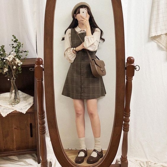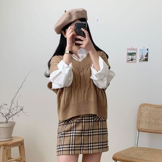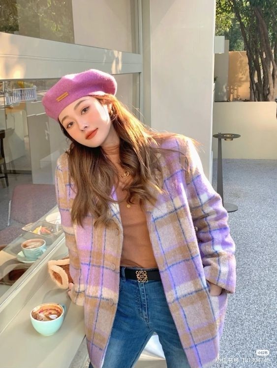 其實貝雷帽也可以搭配格仔裙,毛絨質地的貝雷帽配上充滿青春活力的格仔單品,打造出可愛的英倫學院風~不論是日韓還是歐美女生都愛穿!