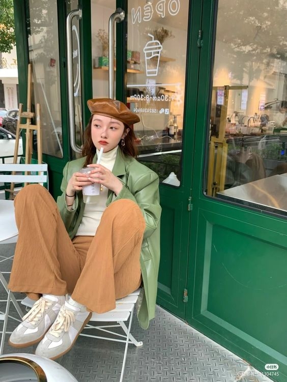 # 貝雷帽+奶茶色穿搭