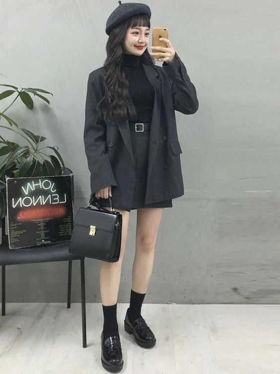 # 黑色貝雷帽+西裝外套