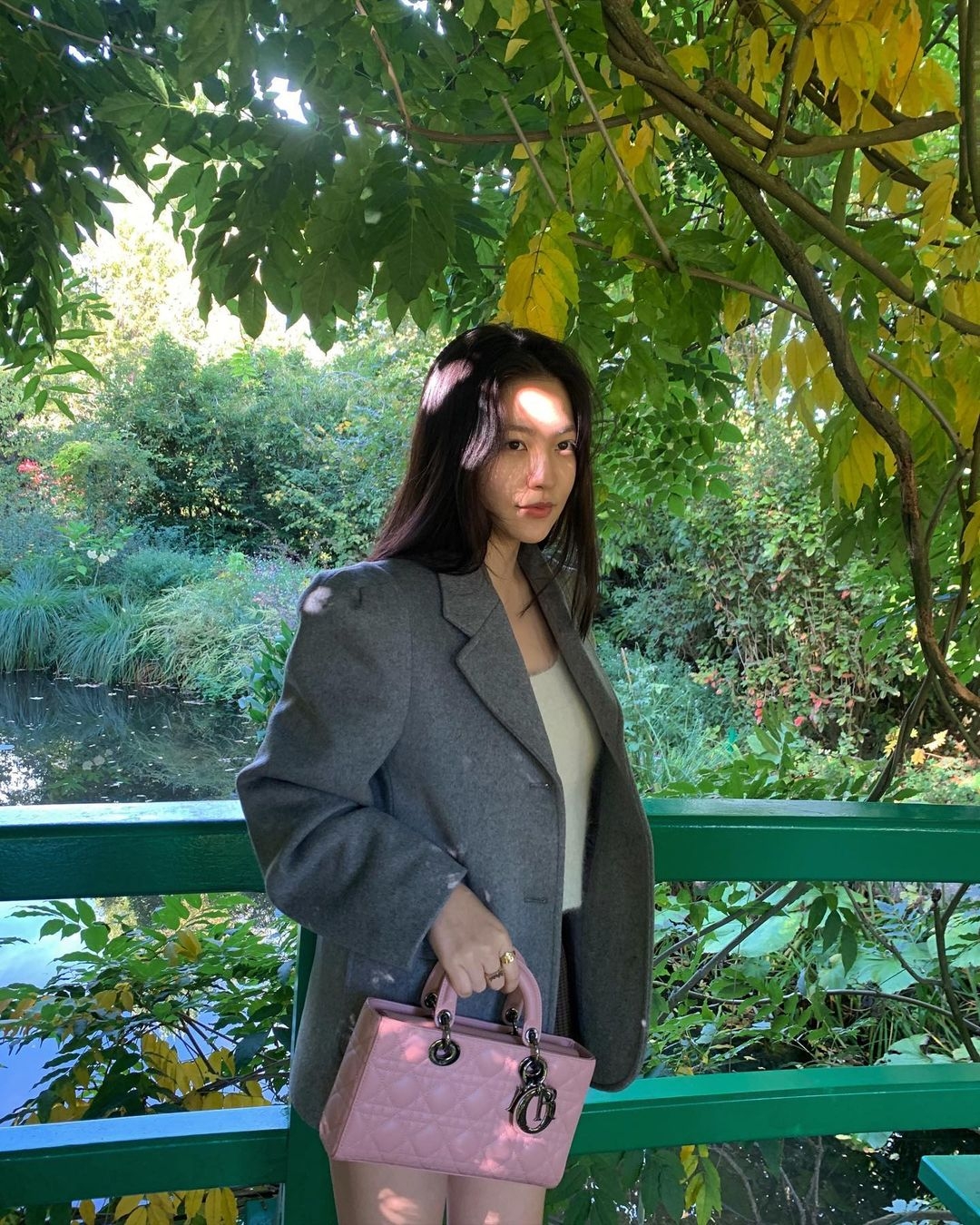 像Red Velvet的Yeri就以一身黑白灰色調的穿搭來搭配,再以粉色Dior手袋為小重點,一眼便能看到~