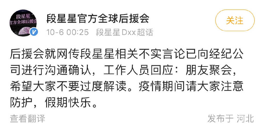 由於男方剛以限定團出道,名氣也不大,加上《青春有你3》的節目中,不少粉絲都以大量金錢為他投票,令他成功擠進限定團。因此這次緋聞傳出後,段星星先透過後援會表示那次是朋友正常聚會並非談戀愛,及後又與粉絲說:「你們想要的還挺多,微博給我點讚了嗎?」直到這次被拍到影片,男方暫時沒有發出澄清,但也令不少粉絲暴怒,認為他在事業上升期公然談戀愛,沒有珍惜自己的前途,加上之前的澄清被質疑說謊。