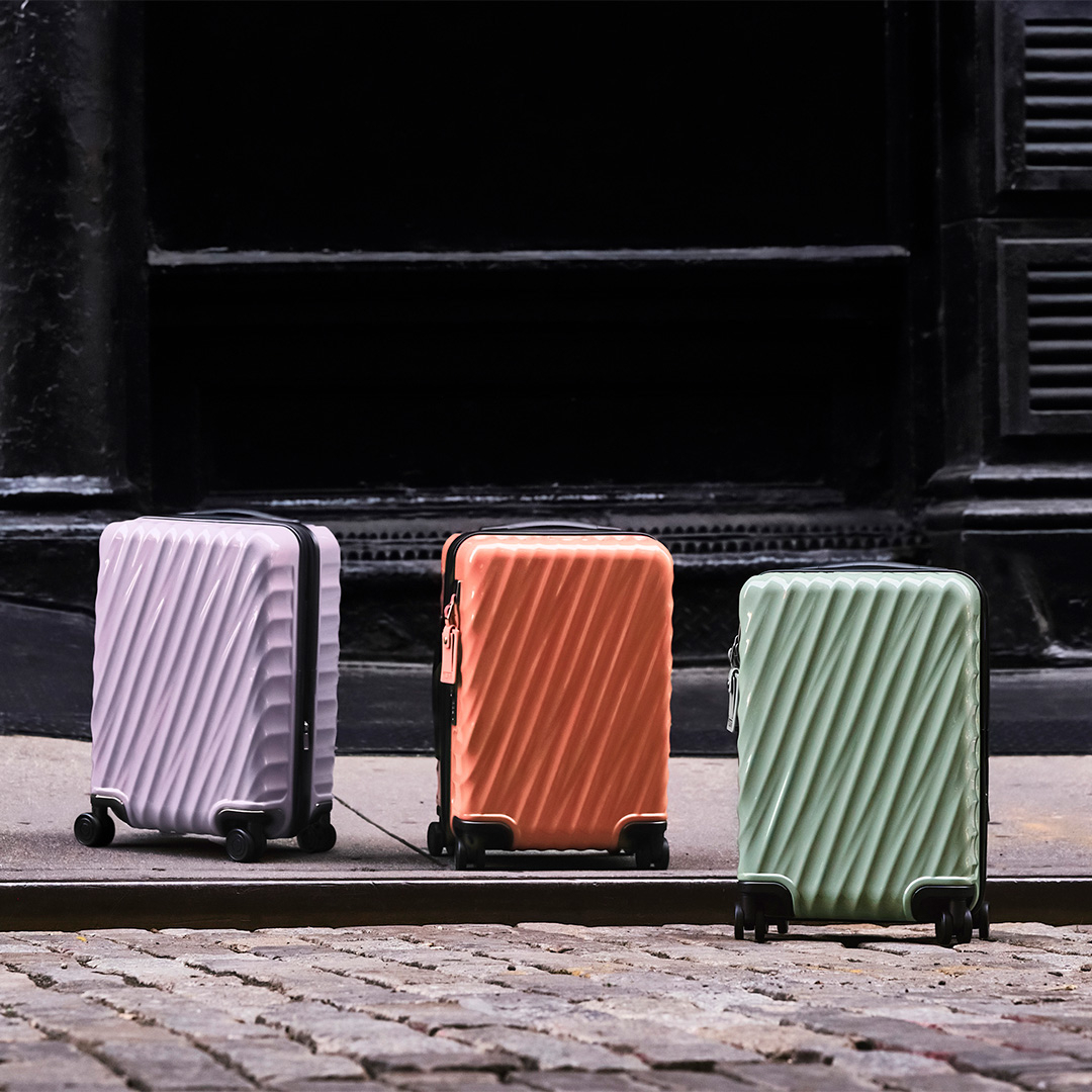 美國行李箱品牌TUMI以樸實沉穩的外型設計,加上值得信賴的耐用度和功能而聞名,一直以低調且時尚的顏色為主,去年春天全新推出了一系列粉嫩配色的行李箱,像是紫丁香、珊瑚紅及MIST迷霧色,馬上吸引女生的喜愛,另外19 Degree Aluminum系列中的深色牛仔布也是大熱之選~