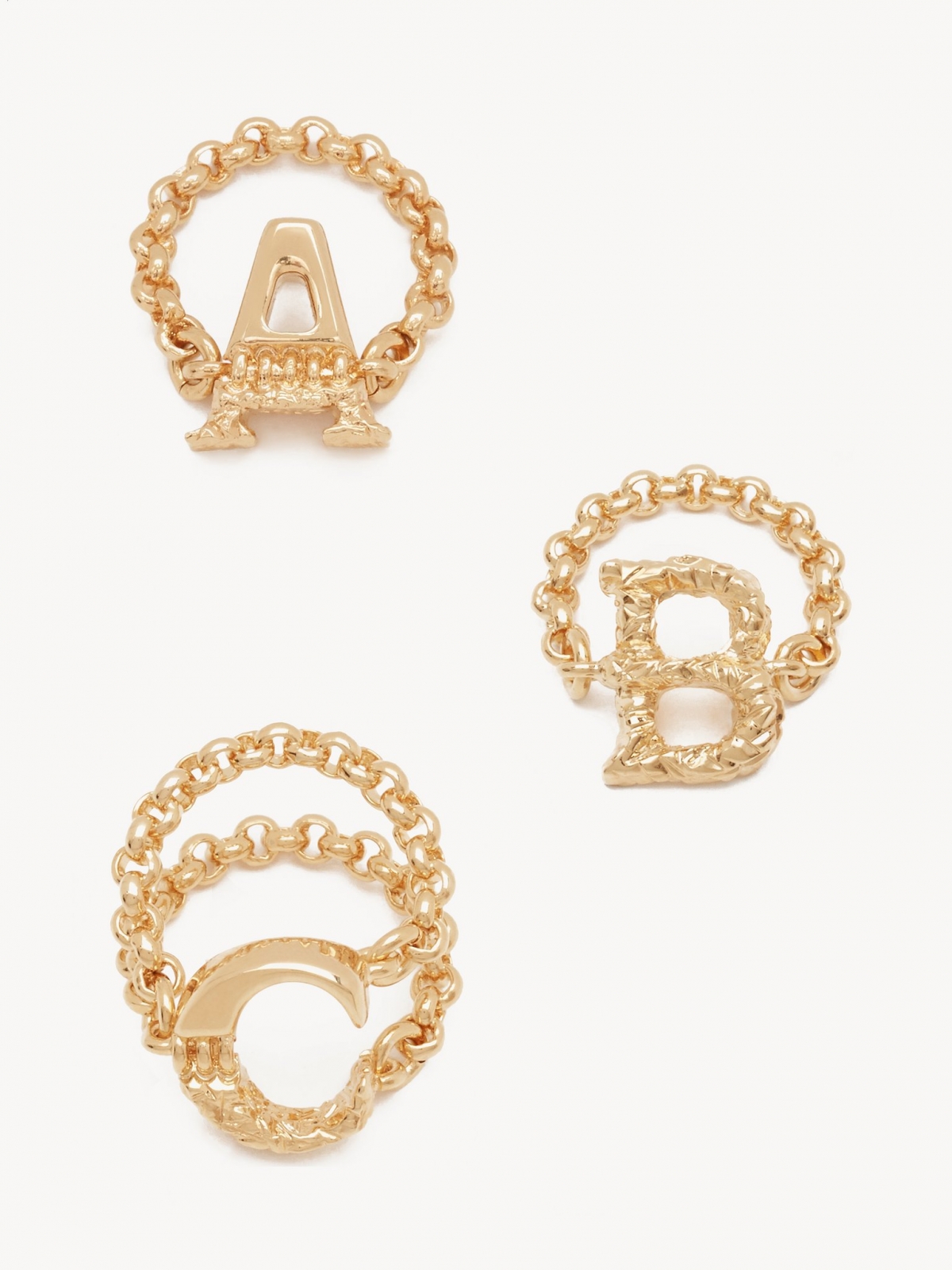 Chloé 的經典字母系列一直大受少女歡迎,而字母鍊戒是也不例外,同樣有A至Z 26個字母,每個字母的設計都稍有不同,並帶有麻花扭紋,加上復古感的金色,設計感十足!同系列亦有推出項鍊系列,大家也可以配襯成一套,時尚感UP!