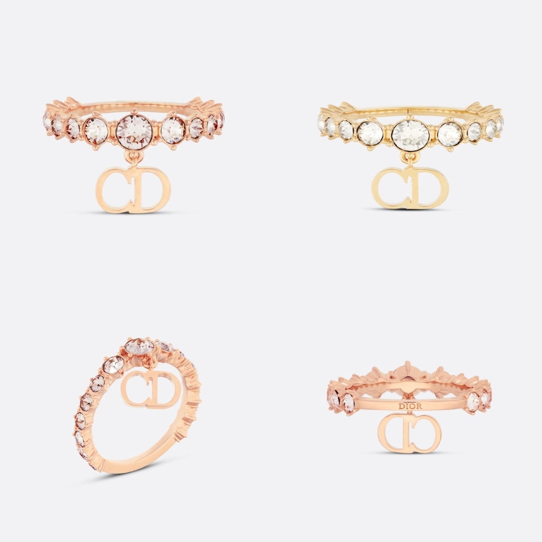 這款戒指以金色飾面金屬加上鏈環設計,上面鋪鑲白色水晶的「DIOR」標誌,展現出高雅又有氣質的感覺~還可以搭配其他系列的飾物。