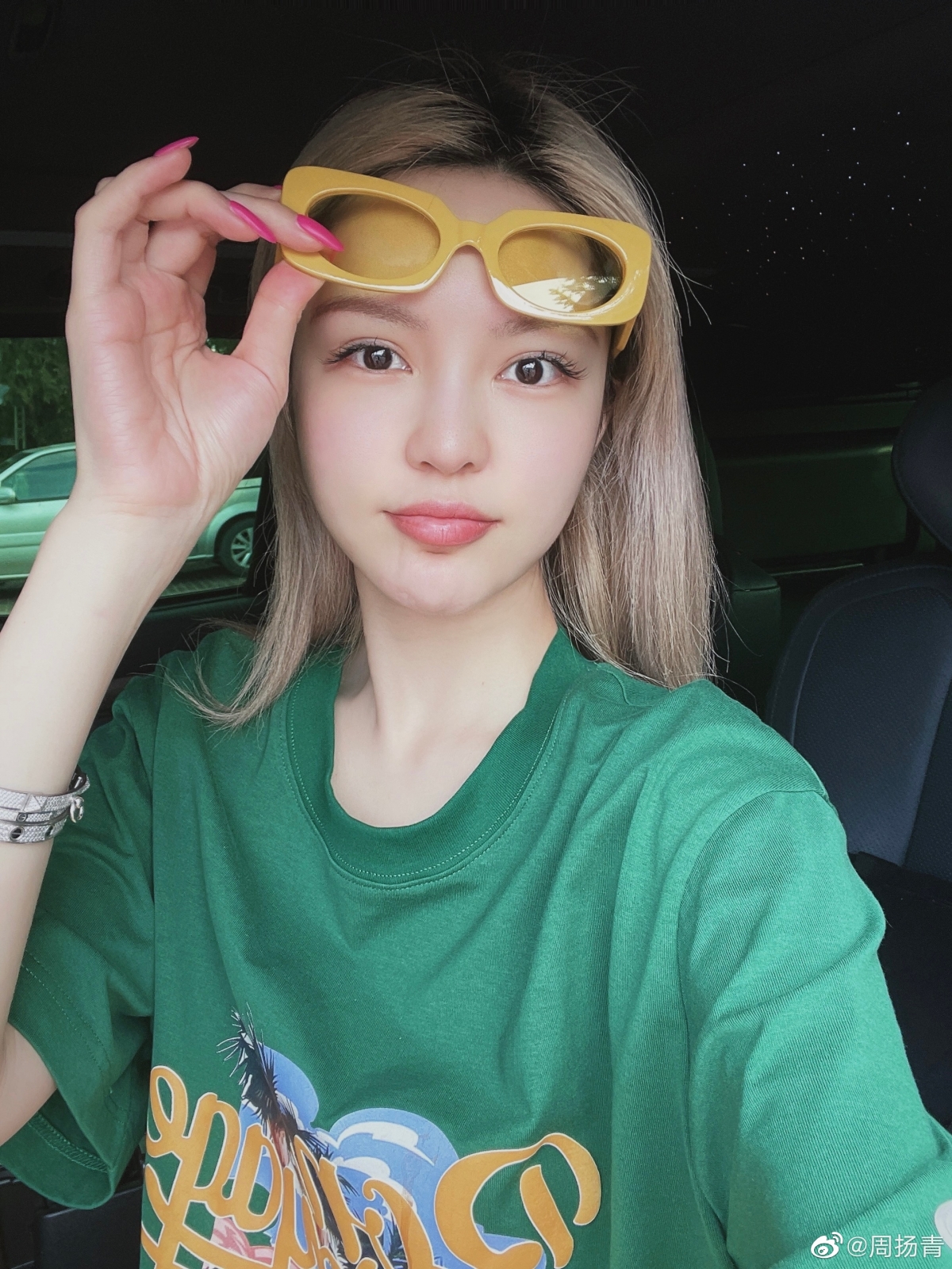 網友的擔心當然就不是只因為黑眼圈,而是當時被傳緋聞的時候,周揚青就常常穿上星星的毛衣、眼妝,還有包含星星的文案,更在一次Po穿著星星圖案衣服的照片配字:「雖然糊,但是架不住我喜歡」被猜測是公然示愛,就算男方名氣不大也照樣喜歡。不過男方公司則是火速否認戀情,絲毫不給周揚青面子,所以更令網友擔心她的新戀情。