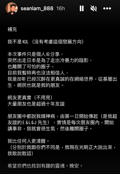 Sean Lam再度爆料後,被點名的KOL,除了Coffee稍早前有忍不住反擊外,其他幾位都沒有特別回應,繼續過著自己的日常生活,所以這些爆料的真偽,可能要尚待更多的回應與證據,才能證實。