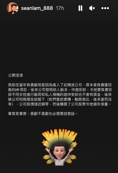 Sean Lam再度爆料