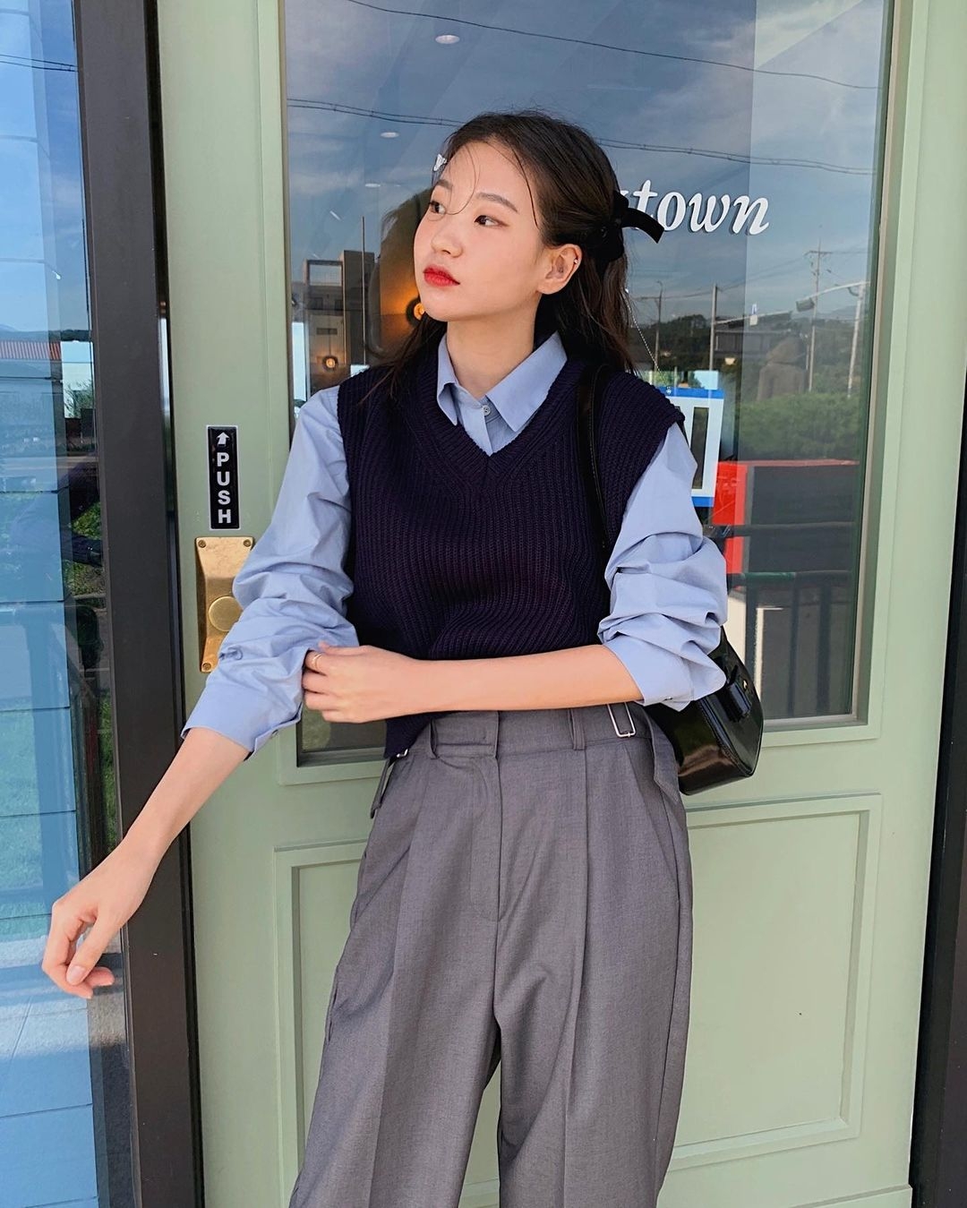 下身簡單地搭配牛仔褲或西褲,充滿率性又俐落~或者外搭一件針織小背心,少女感十足,更能增添層次感!