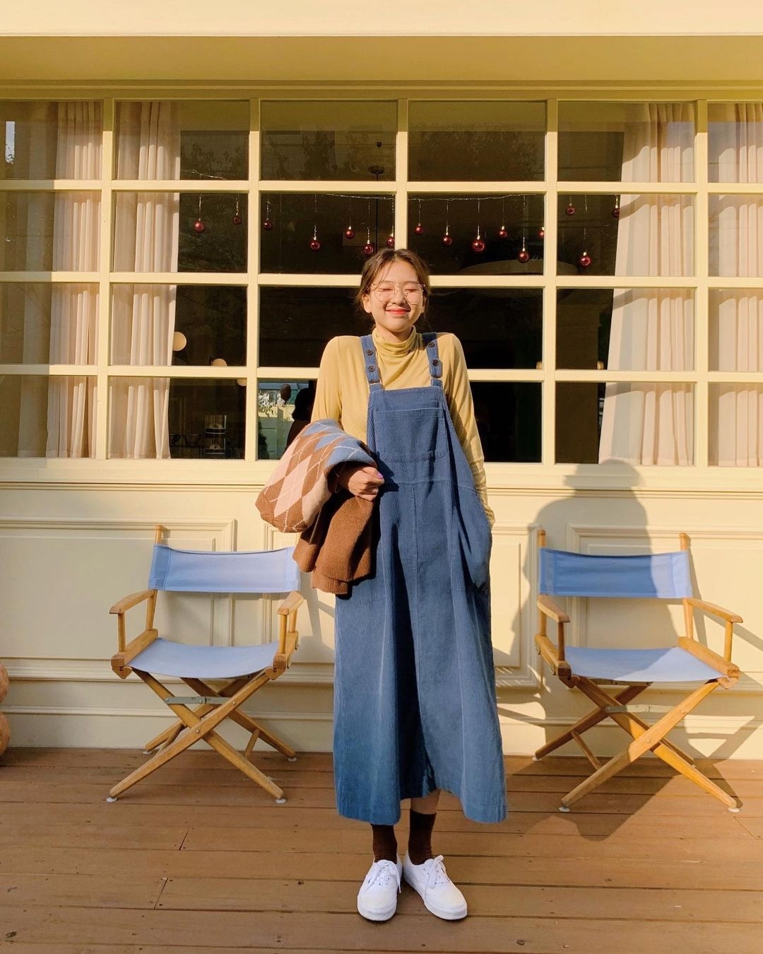 不論內搭任何單品,只要外面穿上連身的吊帶褲或裙,馬上可以出門了~瞬間散發著青春活力的氣息,減齡之選!