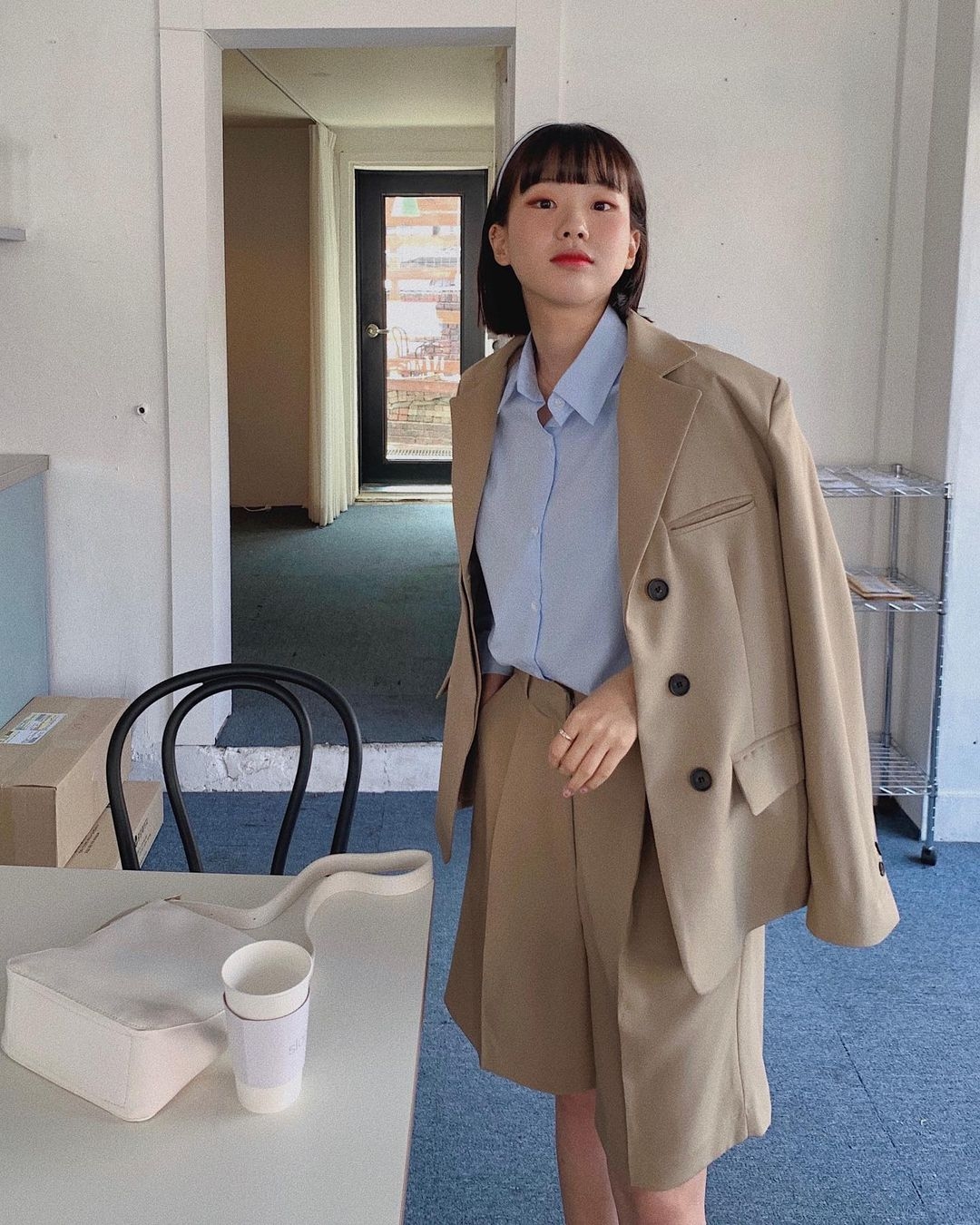 此外,有些西裝套裝款式,連下身也不用想就可以出門了,超方便~大家都能秒變韓妹!