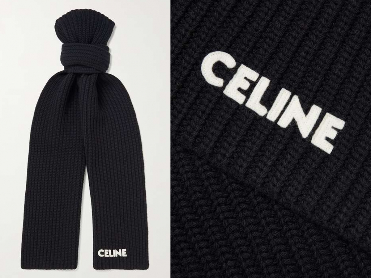 如果喜歡簡約俐落的款式,可以考慮這款黑色頸巾,上面帶羅紋設計,簡單地刺有「CELINE」字樣,絕對是百搭之選!其實這條頸巾是男裝款,但勝在簡約,搭配同款冷帽馬上時尚感UP!