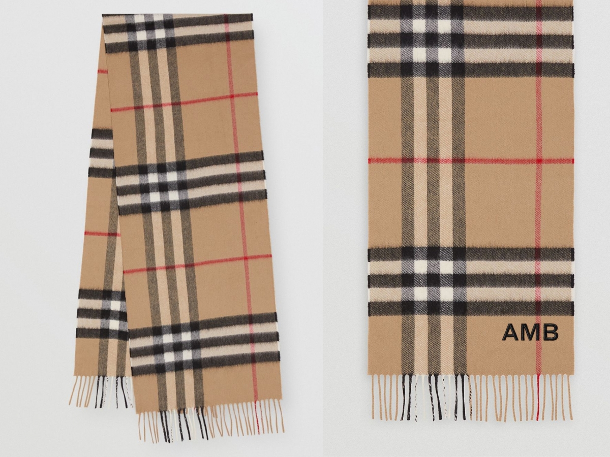另外還可以印上字母,打造獨一無二的頸巾~韓國女演員辛叡恩正是戴住Burberry的同款白色格紋頸巾!