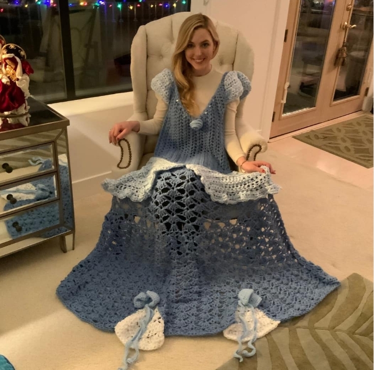 誰能抗拒得了超療愈的迪士尼公主裙毛氈!美國堪薩斯州的達人Carol Hladik透過超強的手藝編織出迪士尼公主裙,讓你在蓋著毛氈時也能像公主一樣美麗!