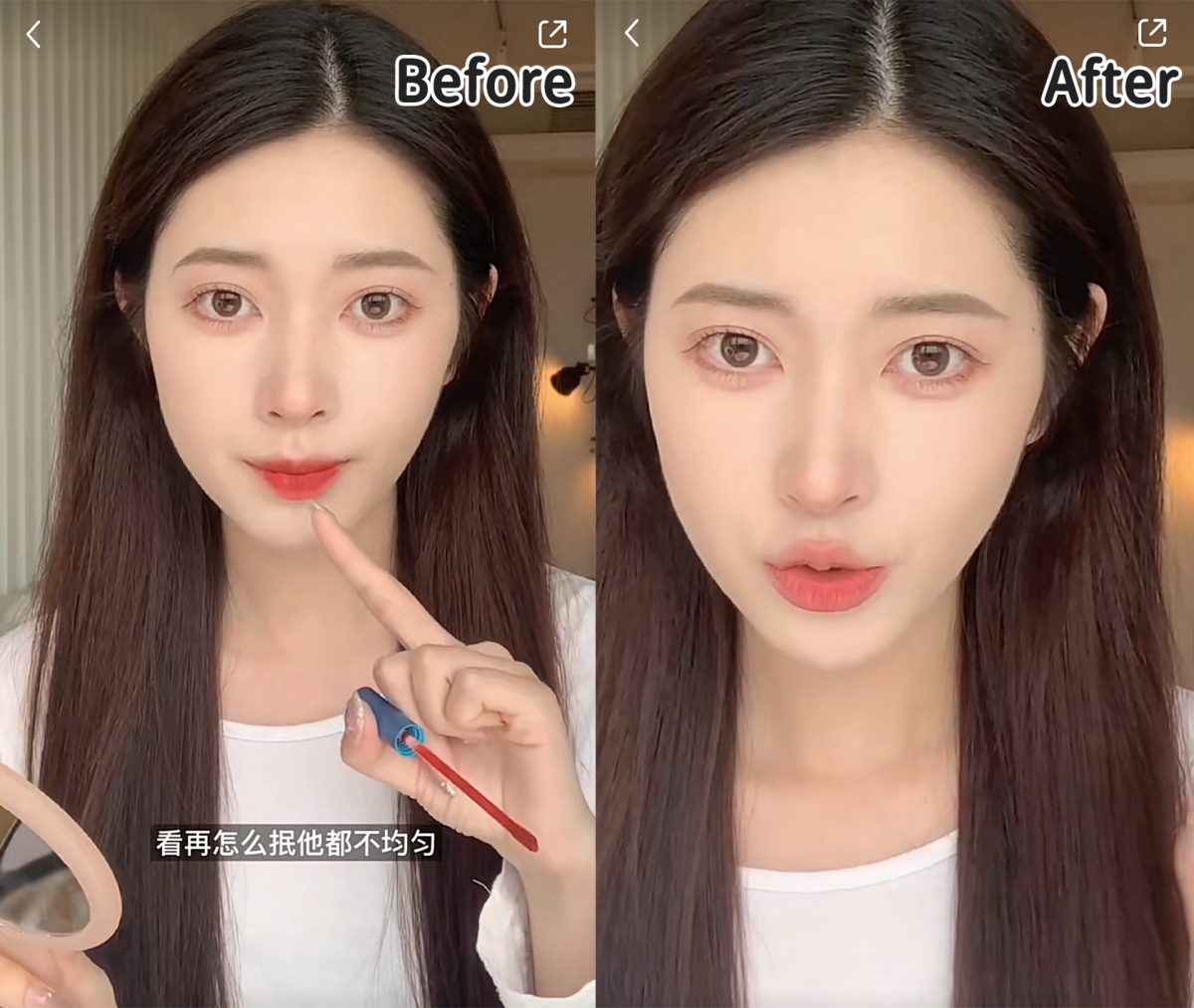 對比起平時直接搽上唇釉,再隨便抿一抿的效果,使用這個小技巧唇妝明顯更自然又細緻,顏色亦塗得均勻~大家也趁聖誕節試一試吧!
