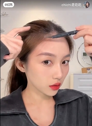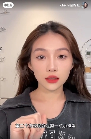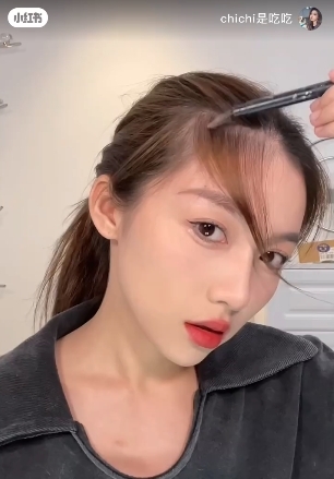 對於髮際線位置比較少頭髮的女生來說,博主「chichi是吃吃」表示可以在髮際線位置剪一點點小碎髮,令這些小碎髮可以幫助遮蓋禿禿的地方。但由於她認為網上很多教學都很複雜,所以她跟大家分享出一個零失誤剪胎毛瀏海的方法。