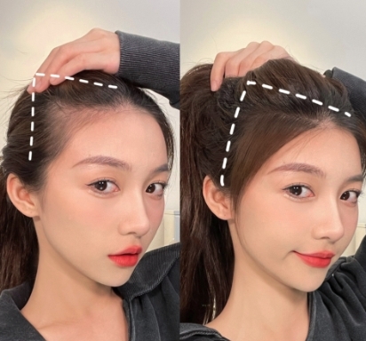 完成後隨意扎一個高馬尾,髮際線就會出現超自然的胎毛瀏海,把原本禿禿的地方遮擋住,非常顯臉小又減齡。是不是特別簡單呢?大家快點試試吧!
