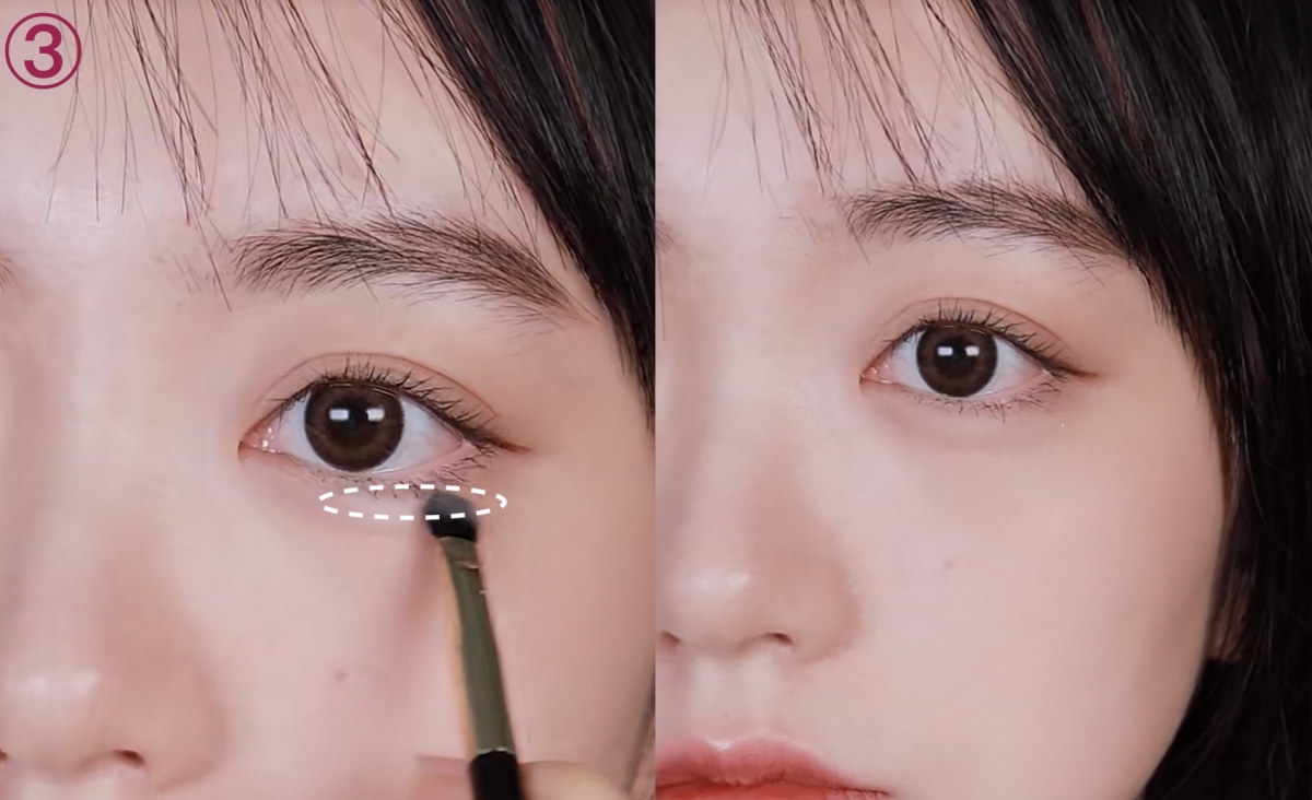 如果想要細緻一點,可以在眼尾部分再稍稍加深三角位的陰影,瞬間打造出自然又勾人的臥蠶~