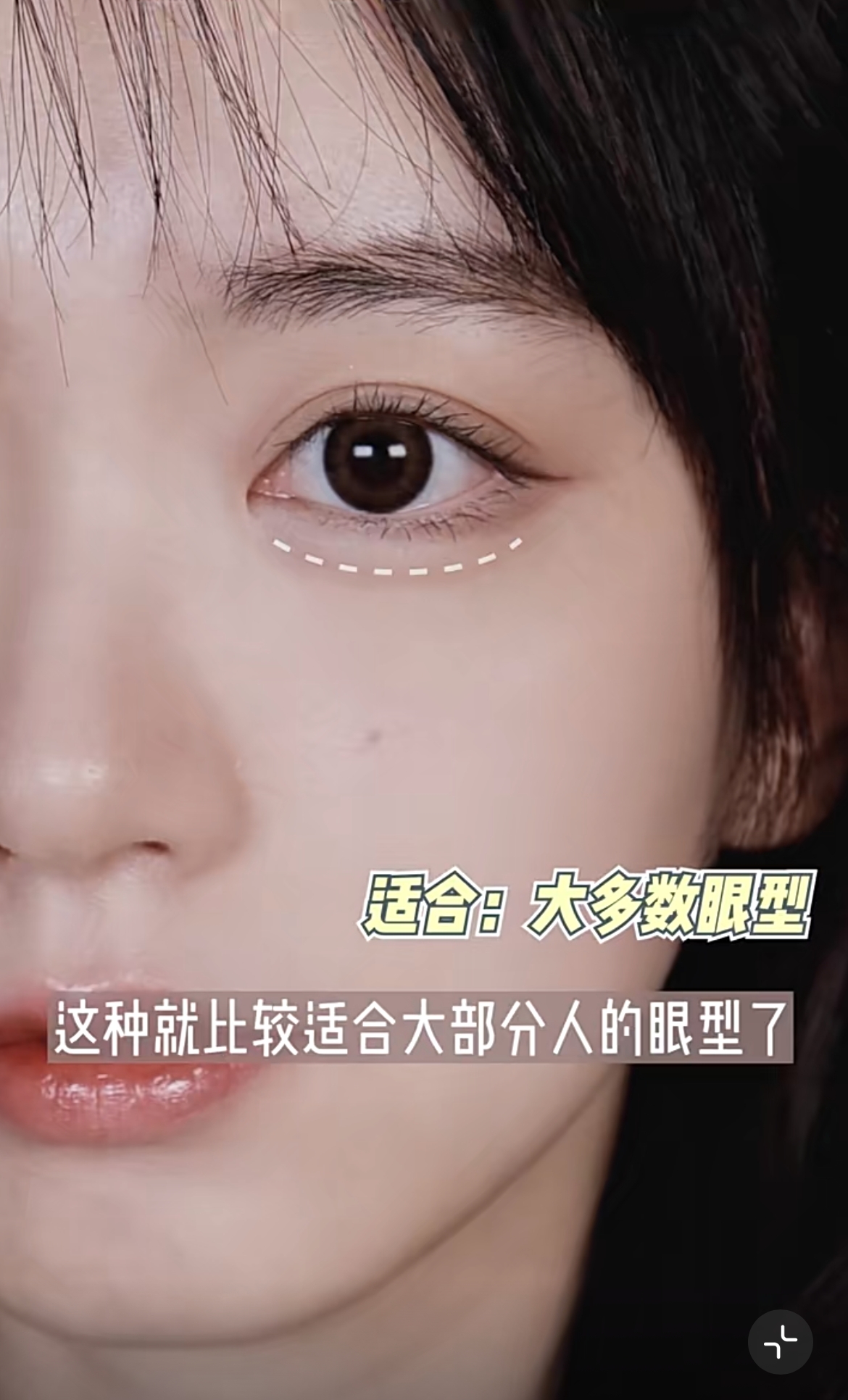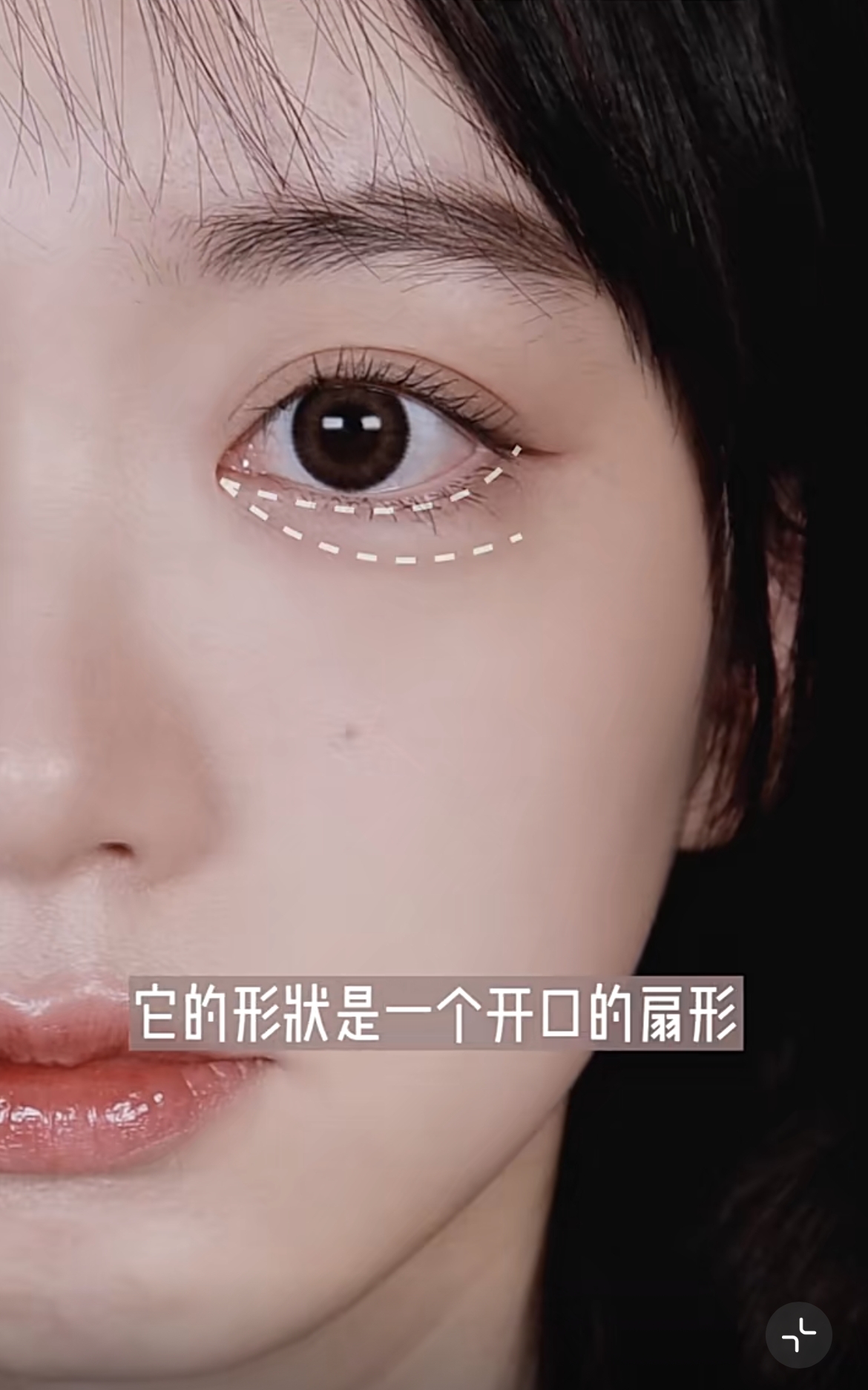 扇形臥蠶是從眼頭至眼尾勾畫出臥蠶,這種畫法比較適合眼距窄或是上揚的女生。把重點集中在眼睛的後半段,有助打闊眼距和降低眼位,看上去更立體自然~