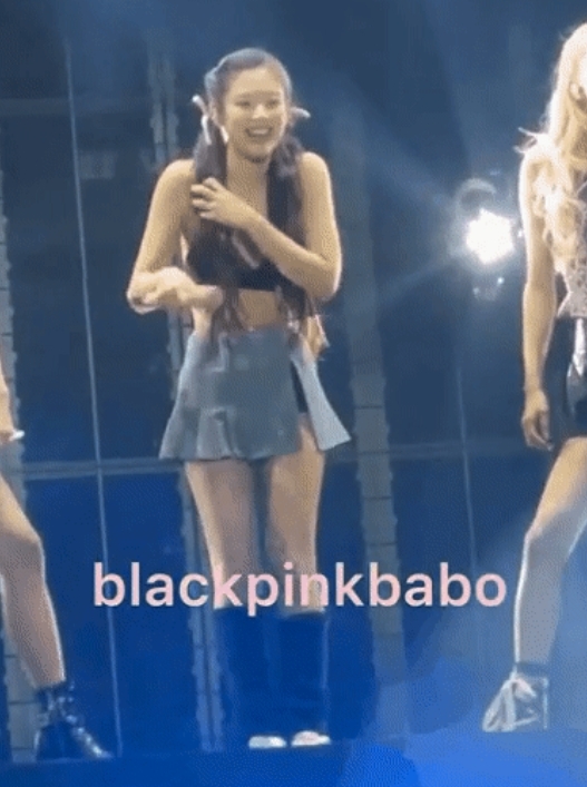 早前在巴黎舉行的BLACKPINK演唱會,「人間香奈兒」Jennie在舞台中途竟然脫下身上的銀色外套,只剩下一件黑色Bra及超短裙熱舞,甚至不介意露出打底褲。
