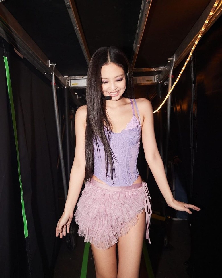 Jennie曾經分享過在演唱會後台拍下的照片,她身穿紫色蕾絲吊帶背心及粉紅色羽毛短裙,當中就被部分網民直指不懂得欣賞,認為上衣有點像情趣內衣。