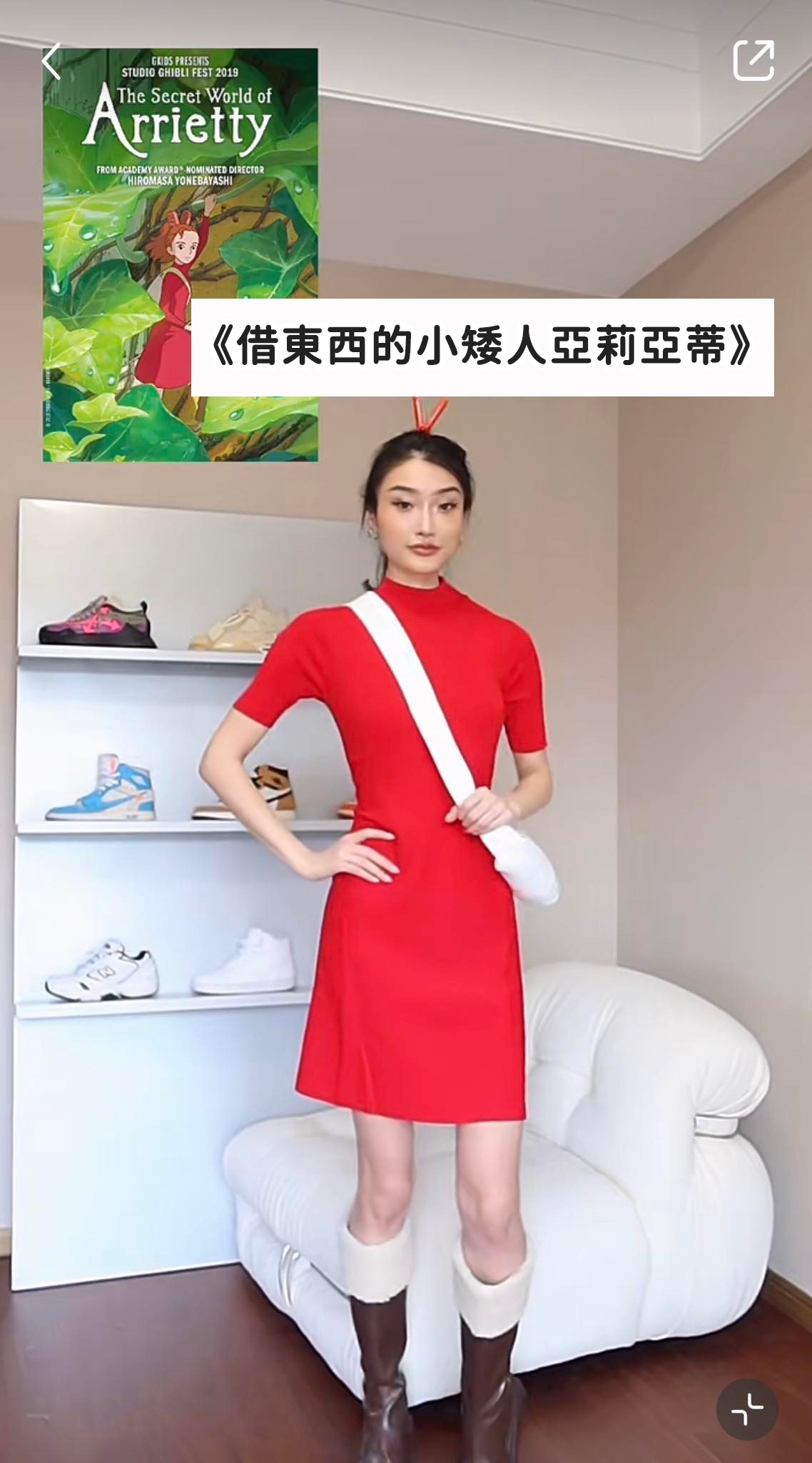 在《借東西的小矮人亞莉亞蒂》最經典的角色莫過於小矮人亞莉亞蒂,紅色連衣裙同紅色衣夾髮夾一直讓人印象深刻,加上亞莉亞蒂需要經常去採集人類物件,所以帶著白色斜挎包到處走動。所以搭上一間紅色連衣裙和白色斜挎包,你也可以成為小矮人亞莉亞蒂俏皮可愛!