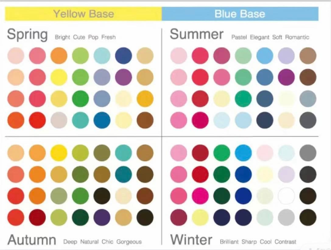 將你的答案記下後,如果回答A、C較多的人,就屬於暖色調,而如果A最多就可以確定是春季型;C最多為秋季型。另一方面,如果答案偏向B、D,則是冷色調,其中B為夏季型;D則是冬季型。你也可以根據你的四季去選擇適合你的衣服顏色同妝容喇~