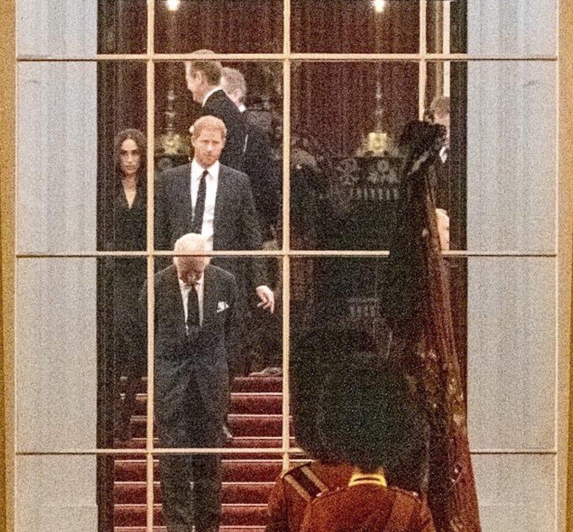 去年英女王伊利沙伯二世在蘇格蘭駕崩,身在英國的王室成員紛紛乘搭私人飛機趕往見英女王的最後一面。當時就有媒體拍到,哈里王子在英女王駕崩後才抵達現場,也就是說錯過了見英女王的最後一面。事後哈里在自傳中曾爆出當時是父親查理斯拒絕讓他帶著梅根前往巴爾莫勒爾,梅根一向與王室關係欠佳,不宜出現在如此悲傷的家庭場合。