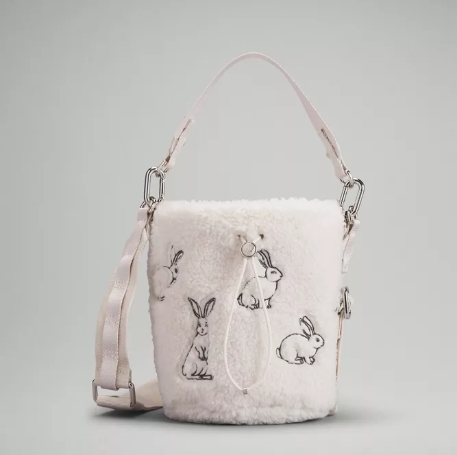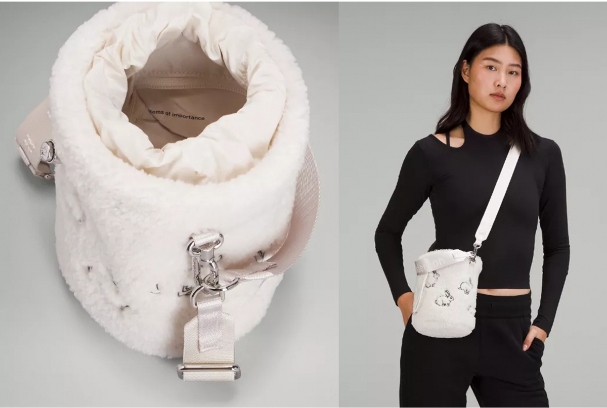 人氣運動服裝品牌lululemon都有推出一系列的新春限定產品,當中羊毛質地的水桶袋也十分可愛,上面印有不同形態的兔仔圖案,打造出俏皮且精緻的風格,同時亦寓意住美好祥和、幸福美滿~