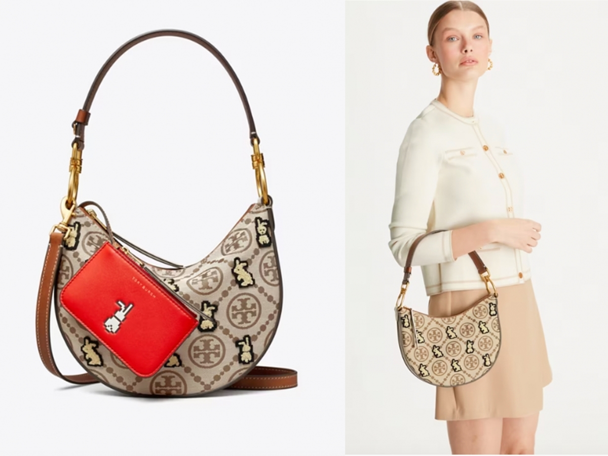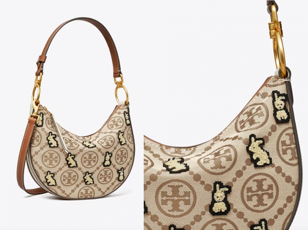 #Tory Burch MINI T MONOGRAM EMBROIDERED RABBIT CRESCENT BAG(HKD 5500)