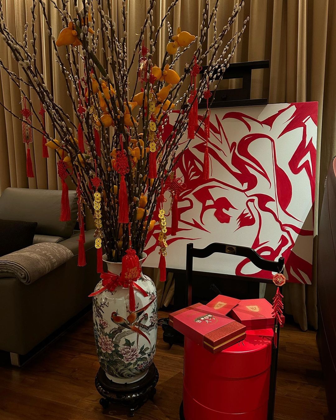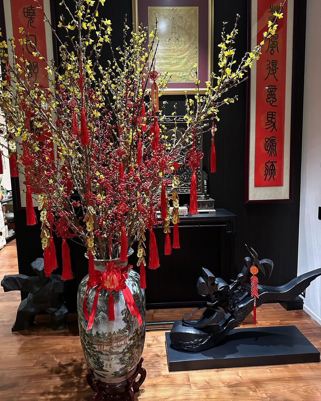 郭富城同樣有在IG上傳數張拜年相,身桃紅色衛衣的城城,看上去非常醒神,他又分享了自己豪宅的新春佈置,可見客廳一角放有大量藝術作品,還有一個座地花樽放滿年花。家中另一角又有一幅佛像畫作,又掛上春聯及放有串串金、富貴子等年花,大宅充滿古典氣氛。