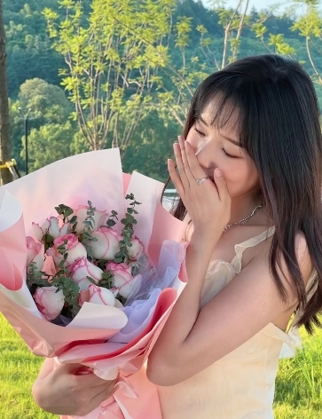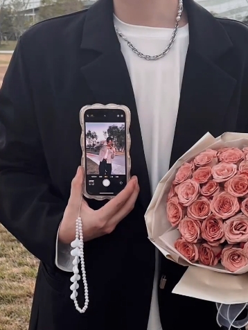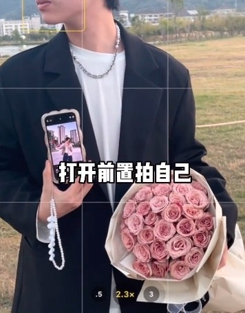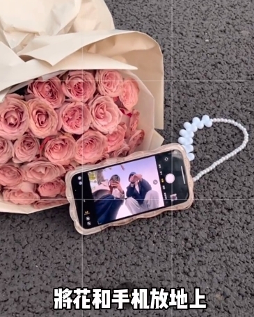 相信有些女生的男友並不擅長拍照,這個時候你就可以叫男友一手拿著花束,一手舉起手機並開前置鏡頭,然後你就可以用另一部手機拍自己。