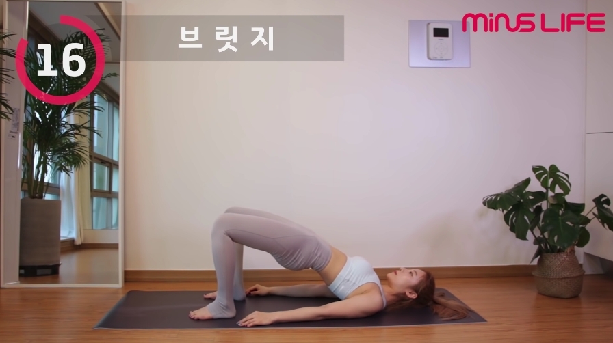 第一個動作非常簡單,先做出橋式動作,然後靠臀肌發力將臀部往上抬高,抬至膝蓋、臀部與腹部呈一直線,維持2-3秒後臀部慢慢回到地面,一共做20秒。
