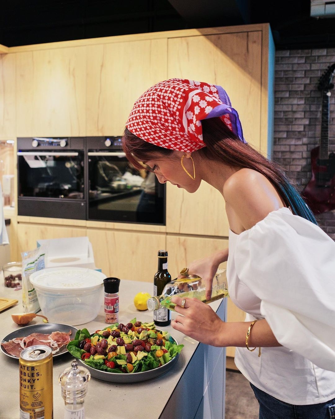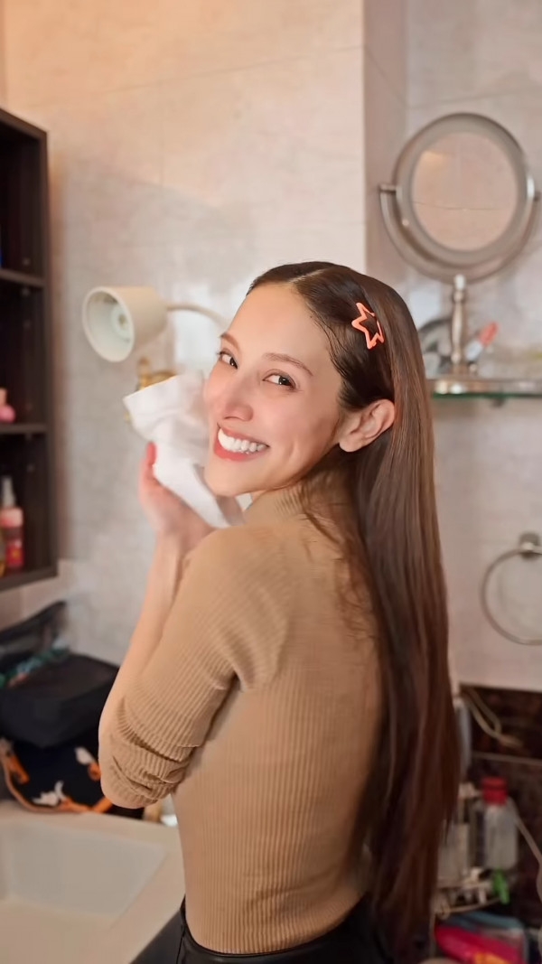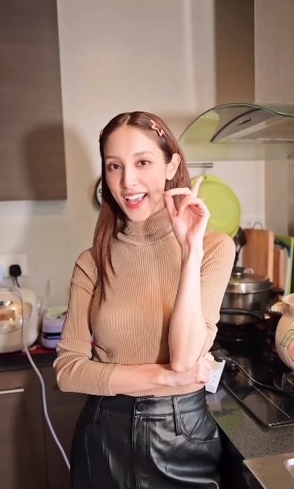 近日Grace在IG上傳了一段親自下廚整合桃糊的影片,影片中她先是淡妝上陣大晒廚藝,在中間就即場卸妝晒素顏。可見卸妝後的Grace臉上幾乎零瑕疵,而且素顏的樣子更突顯少女味,完全看不出已經是3個孩子的媽媽。