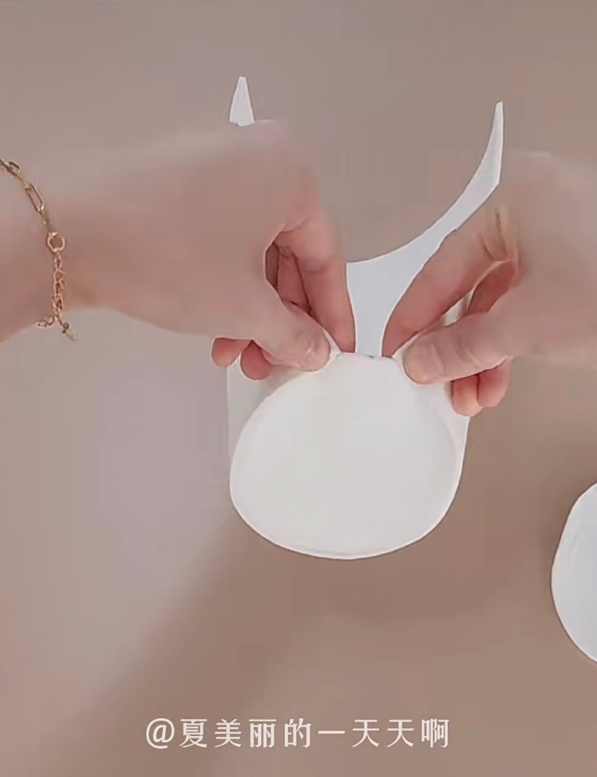 之後把三個圓環交叉對疊。頭部、尾部均用雙面膠紙固定,組成兔子的身體框架。