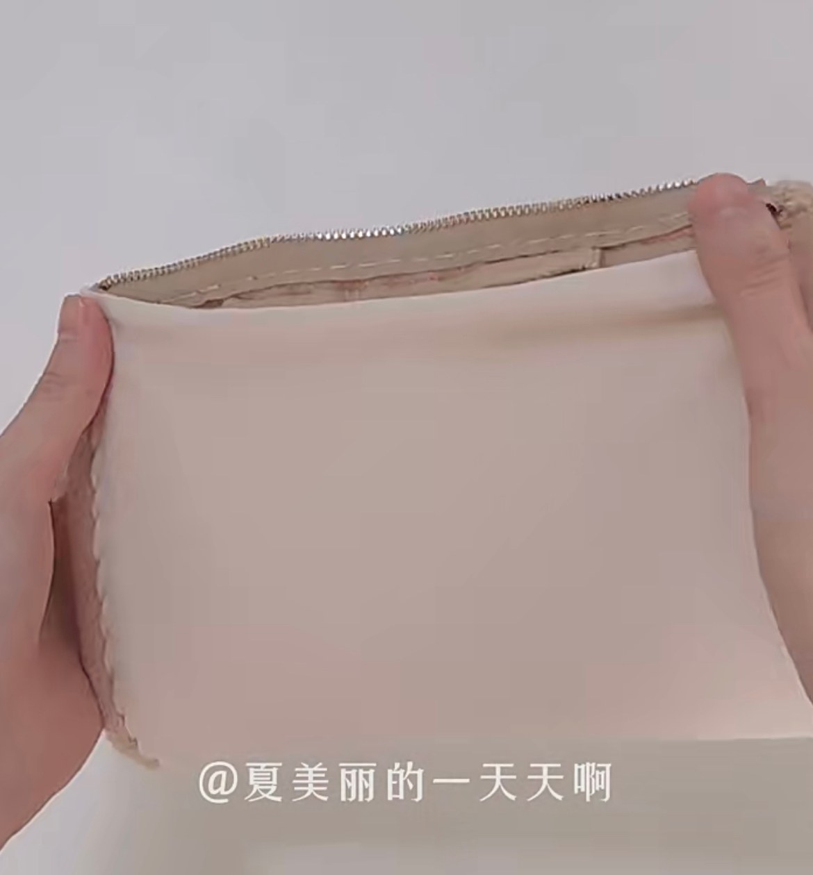 再找一條約20厘米的拉鍊,固定在這條邊上並縫合。