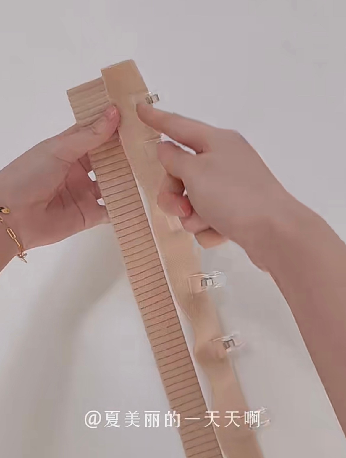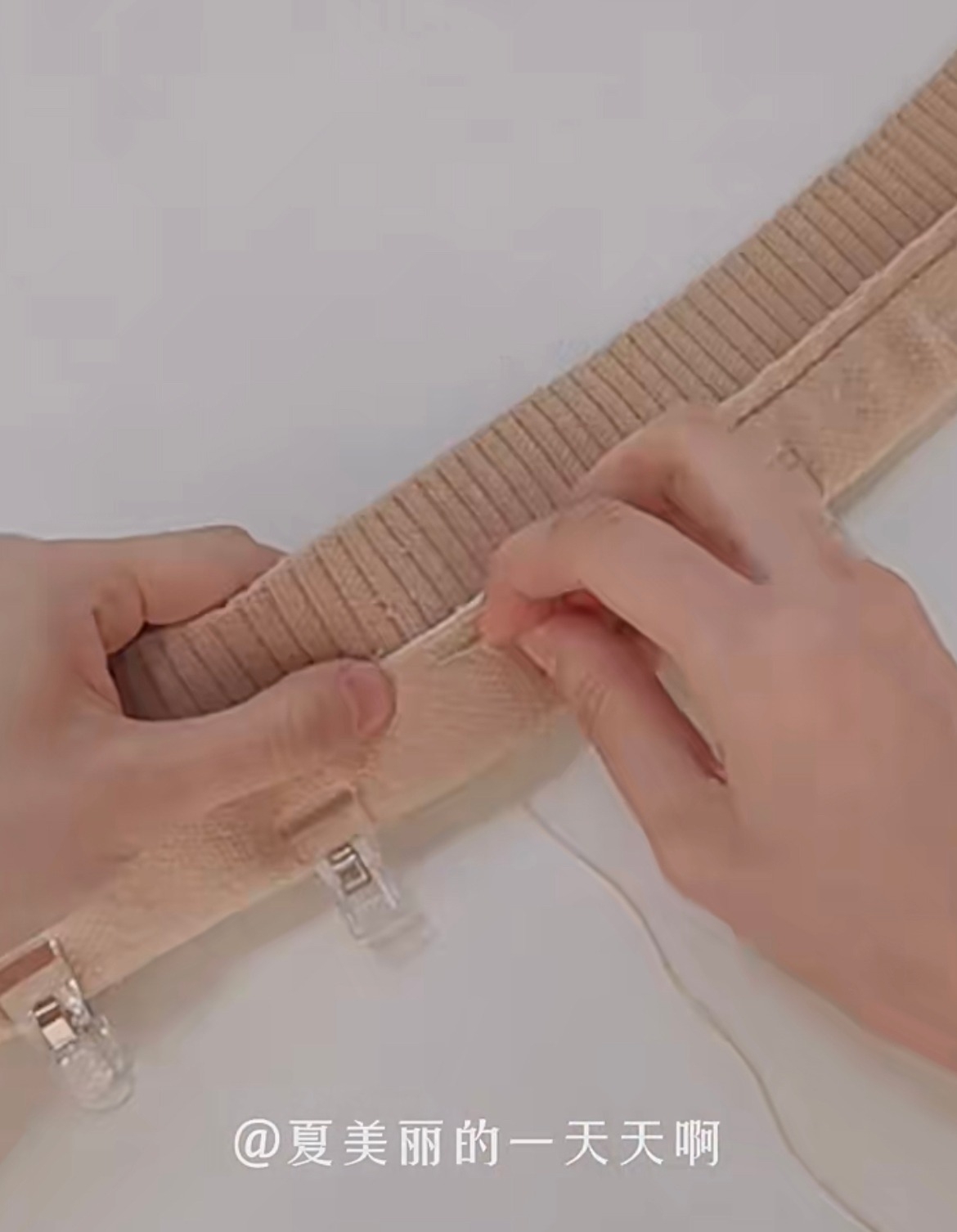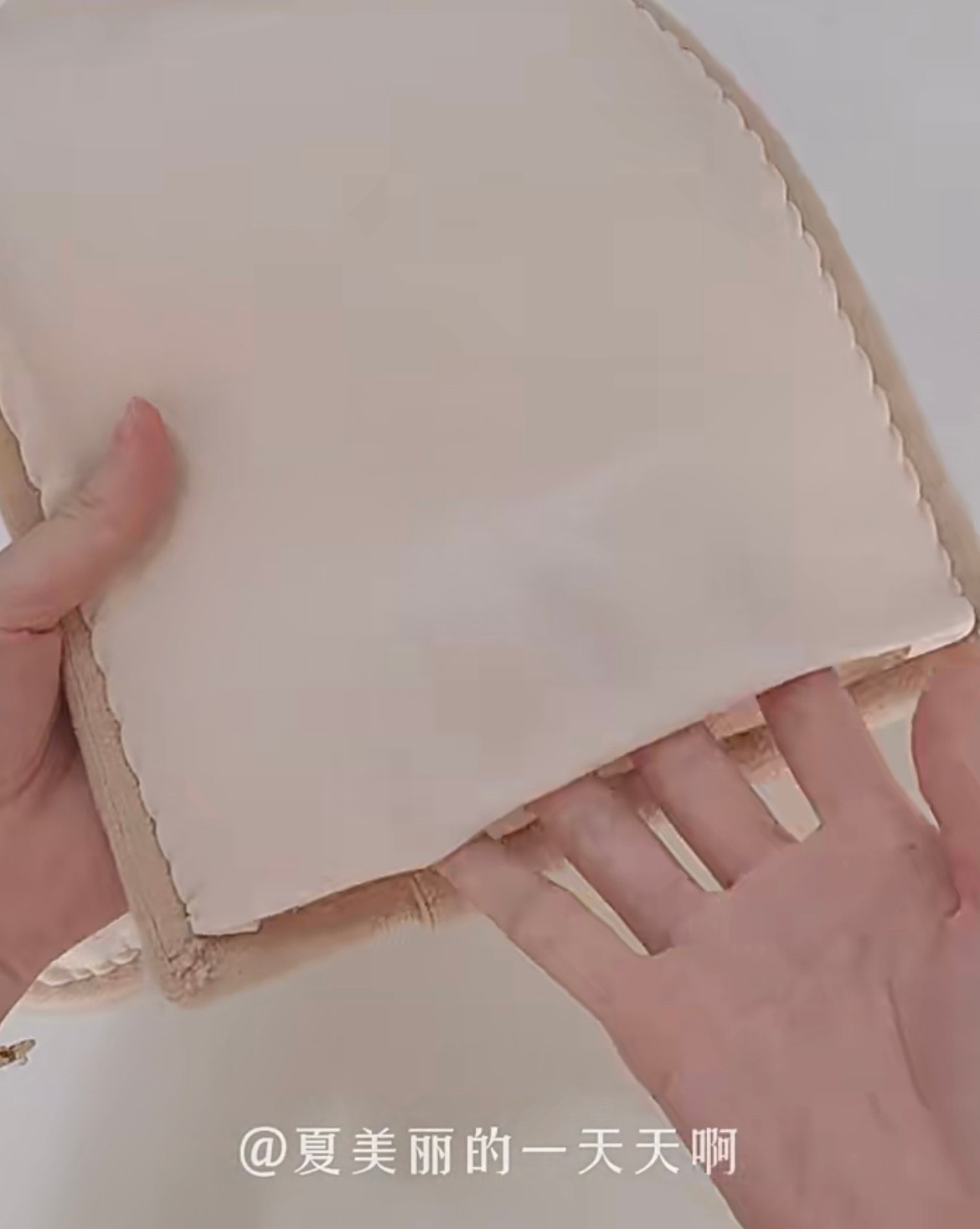 然後另一側也這樣固定並縫合,作為手袋的手挽部分。