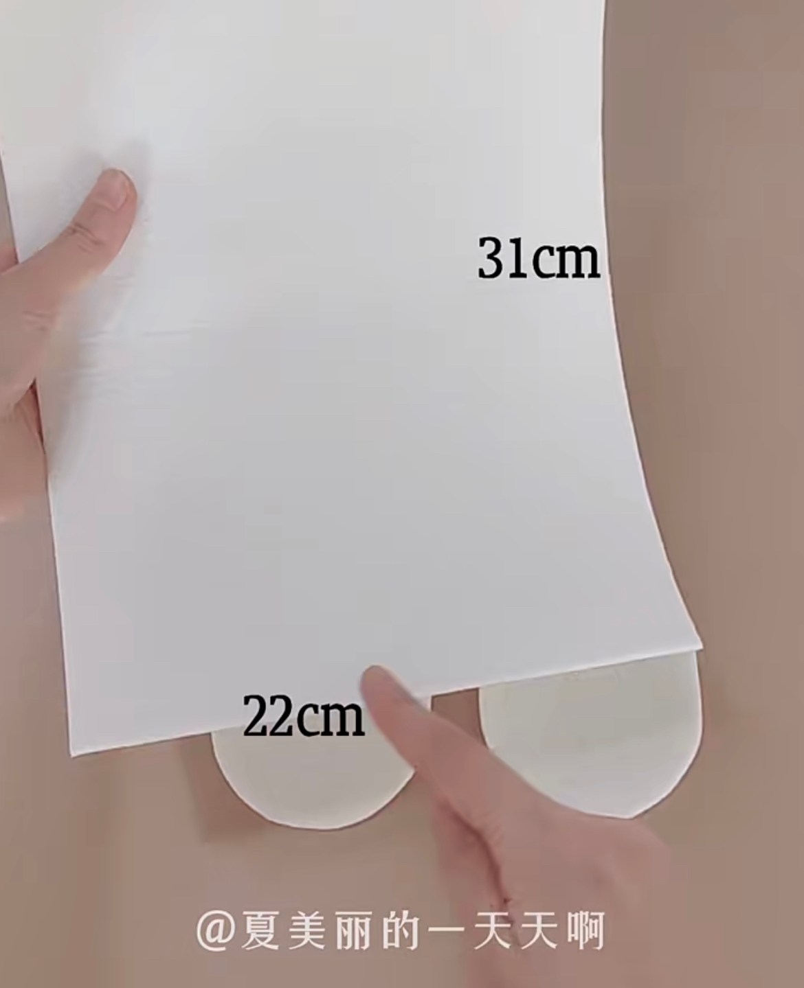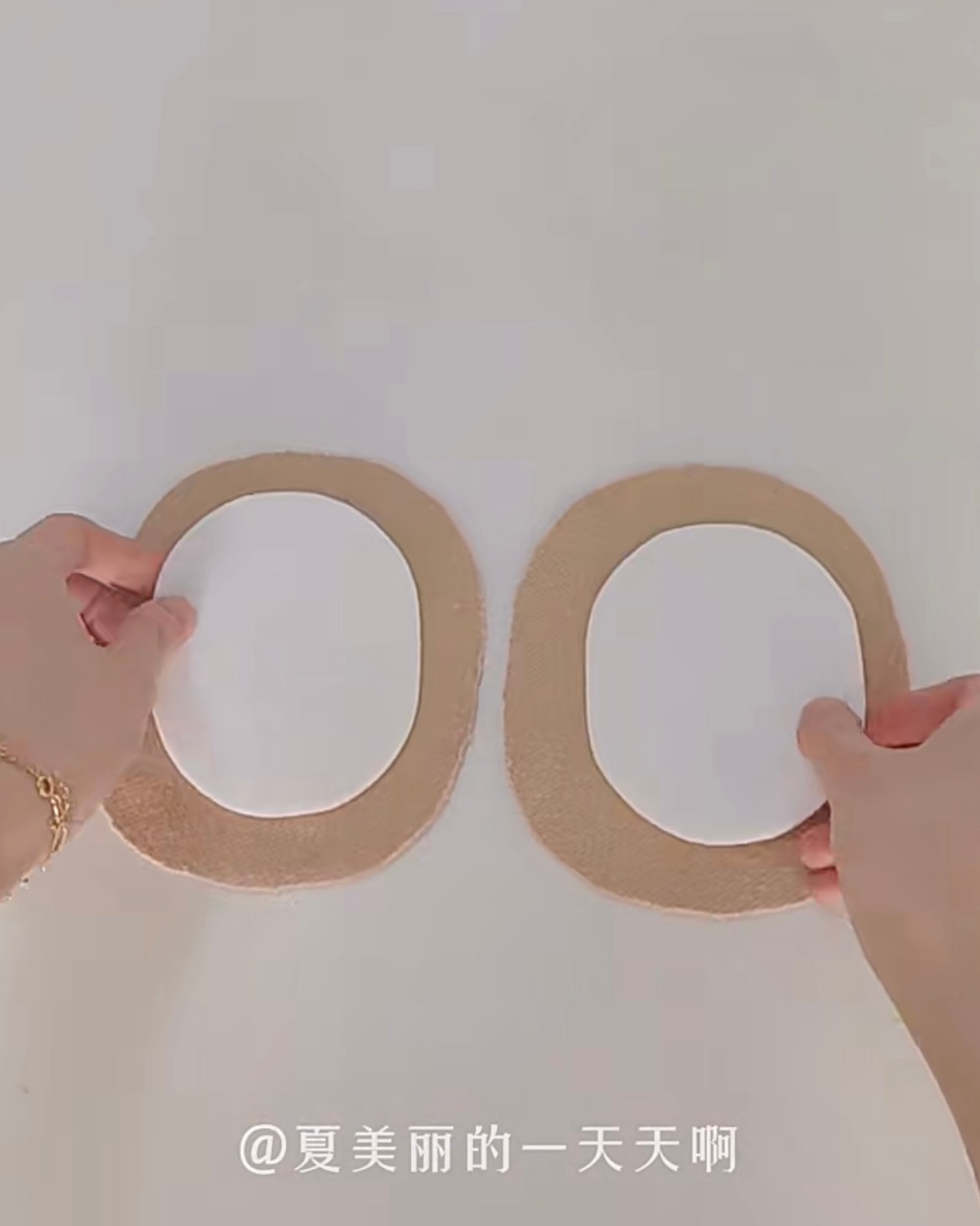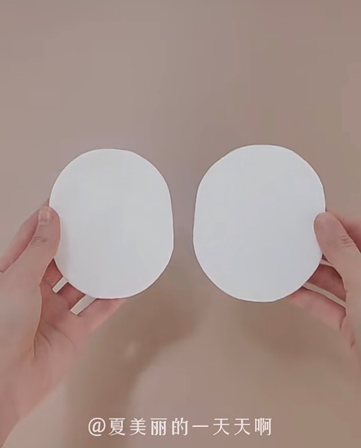 再根據剛才的紙片大小,剪出兩片橢圓形,用來做手袋的側片。